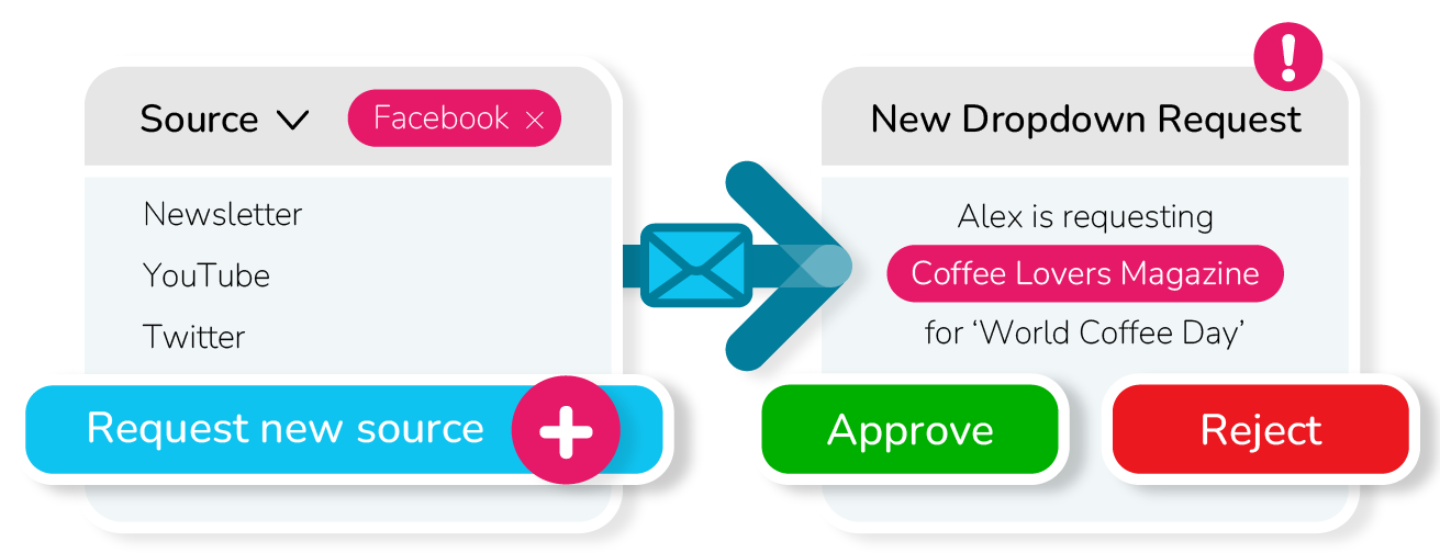 Users can request new dropdown values, which fires an email to admins to check, approve or reject.