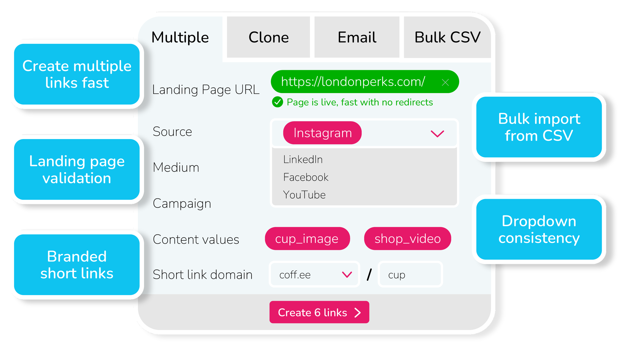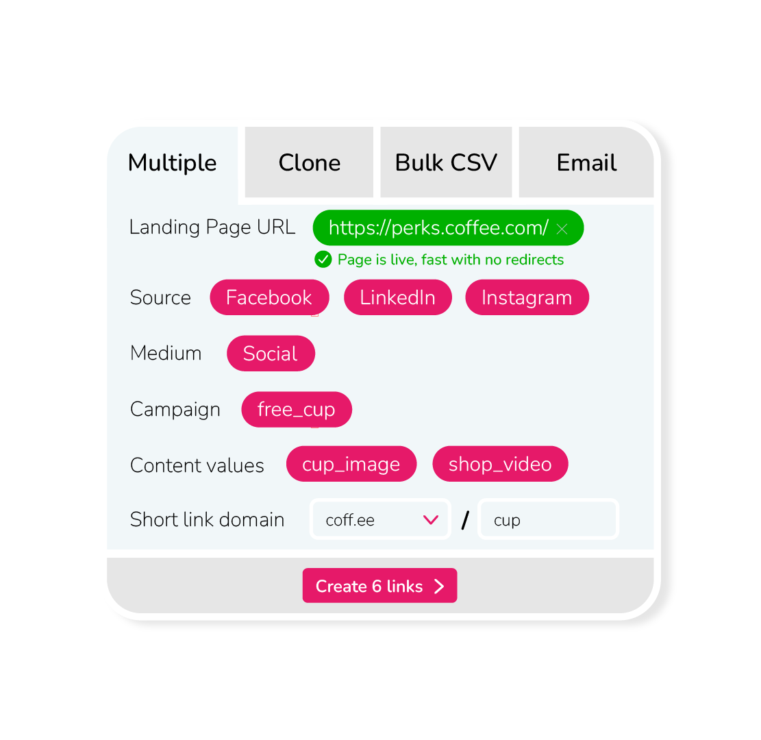 Get the whole team creating thousands of accurate campaign tracking links, fast.